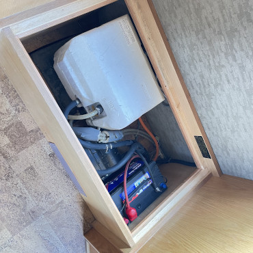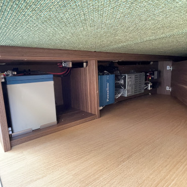 エバスFFヒーター、走行用リアクーラー、テレビ、インバーター、ツインザブ、冷蔵庫