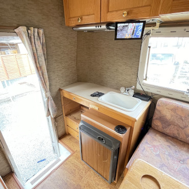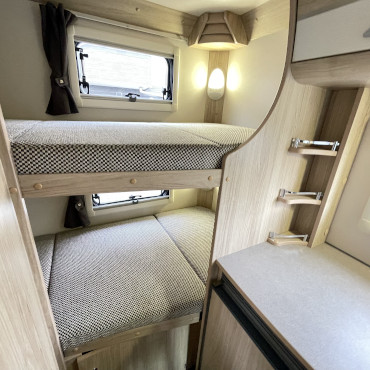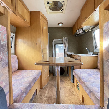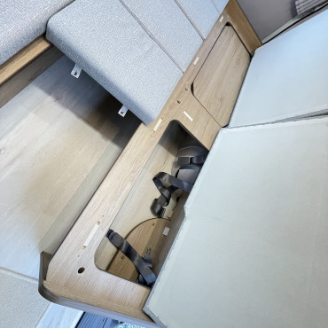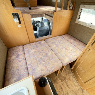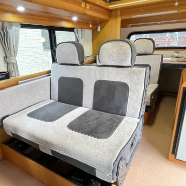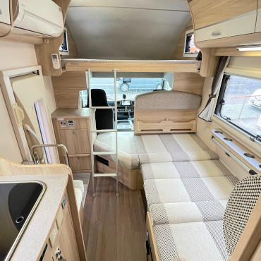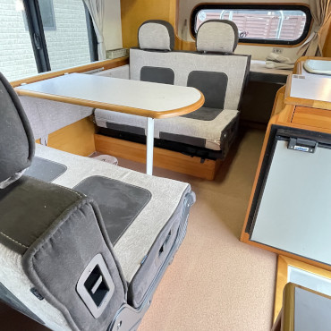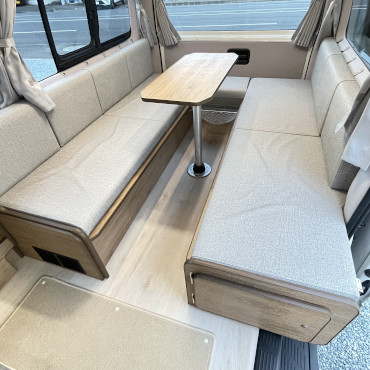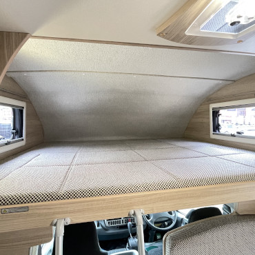 ジルノーブルはダイネットをベッド展開せずに、後方のダブルベットとバンク部分で就寝するタイプになり、2人旅にはピッタリなレイアウトです。