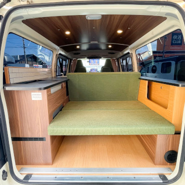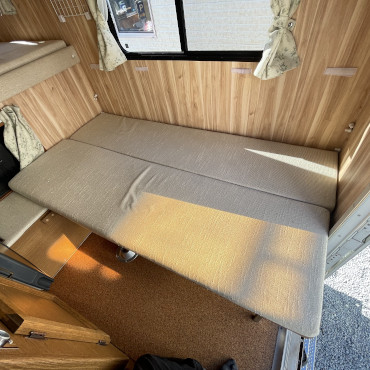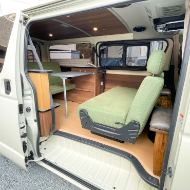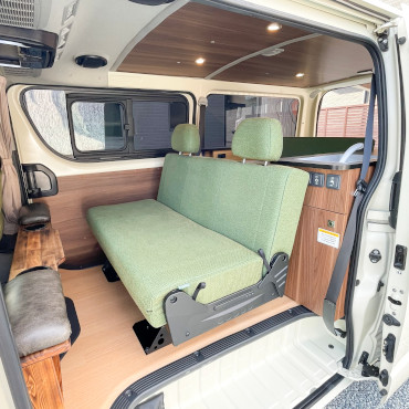 こちらは後席にファスプシートが二脚あり、折りたたみ二段ベッド付きのモデルになってます。