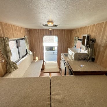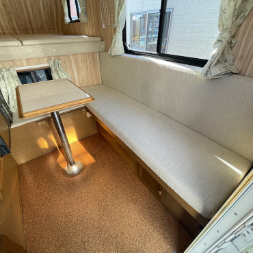 主に冬に、スキーで使用されていたキャンピングカーは購入当初から大事に乗られてきた事が分かる位、外装やステッカーの色褪せも無く、室内も雨漏れや使用感が感じないとても良い状態でビックリしました!