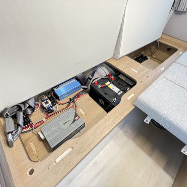 ソーラーパネル、ベバストFFヒーター、サイドオーニング、トイレ、シャワー、温水ボイラー、ツインサブ、冷蔵庫、ルーフベンチレーター、リアエアバックサス