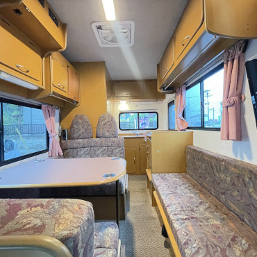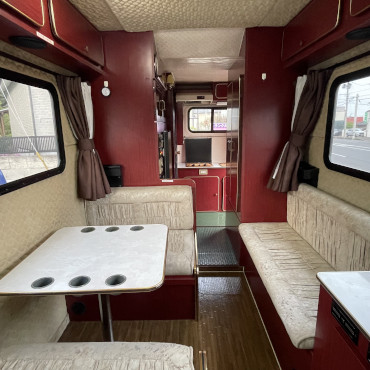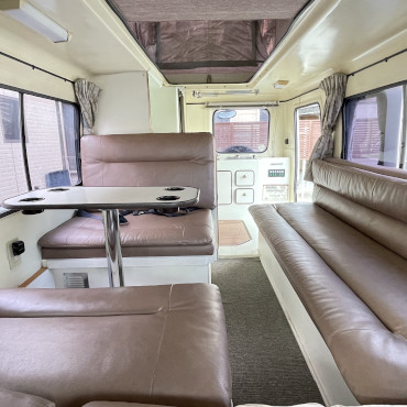 主に冬に、スキーで使用されていたキャンピングカーは購入当初から大事に乗られてきた事が分かる位、外装やステッカーの色褪せも無く、室内も雨漏れや使用感が感じないとても良い状態でビックリしました!