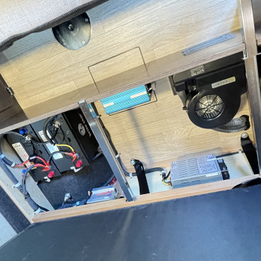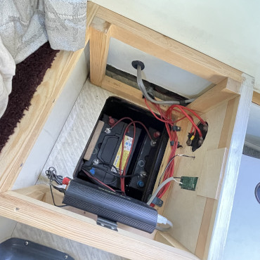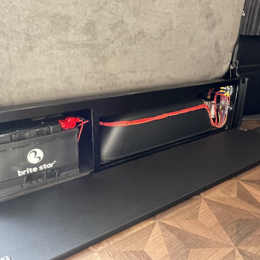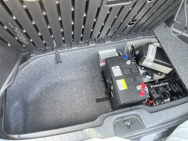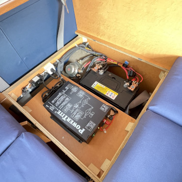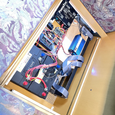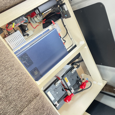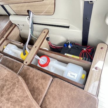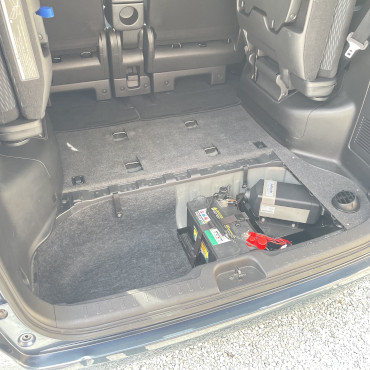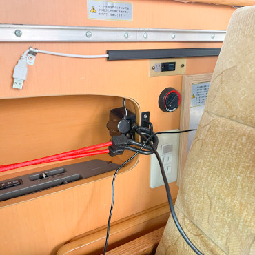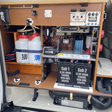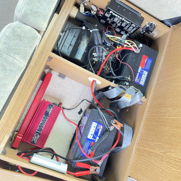 F様自身でされたリチウムイオンバッテリーに変更や、外部電源からメインバッテリーも充電出来る配線にしたりと、業者がしたような配線の綺麗さでした。