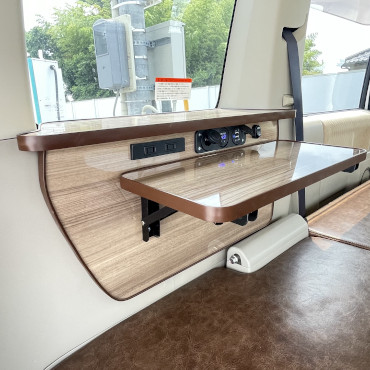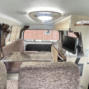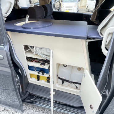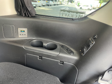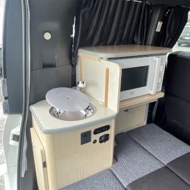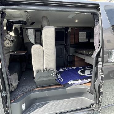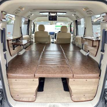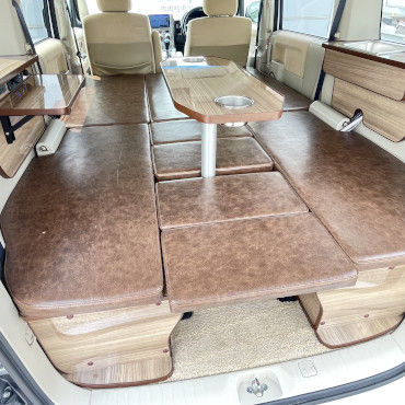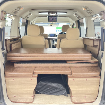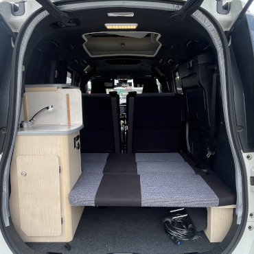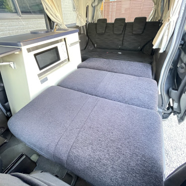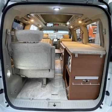 Dキャンパーは、3列目シートを外し電源システムと家具を搭載したキャンピングカー仕様となっております。
