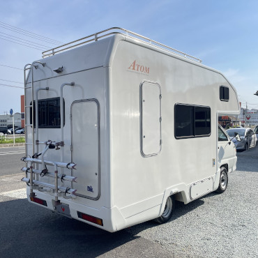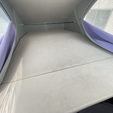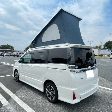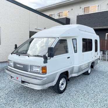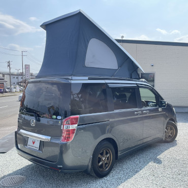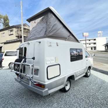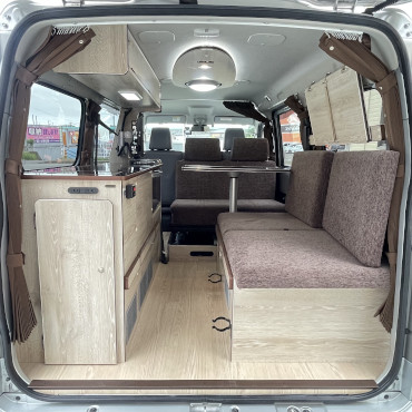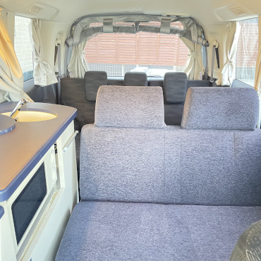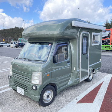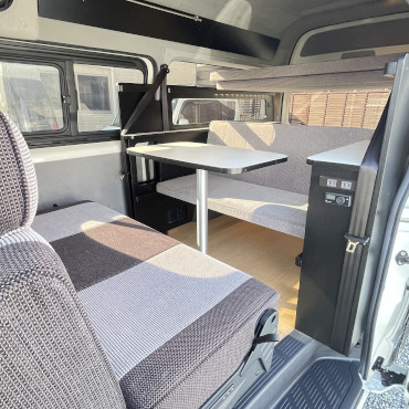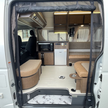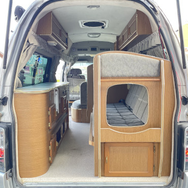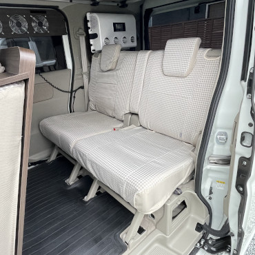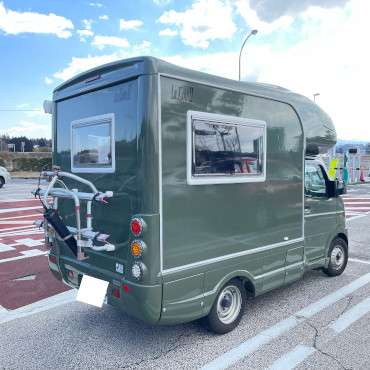 こちらの車両は軽自動車登録ベースで、駐車スペースに困らない、維持費も安い、ポップアップルーフが付いている事で就寝人数も確保でき、夫婦二人旅やプラス小さいお子さん連れにピッタリな車両ですね。