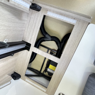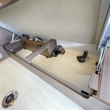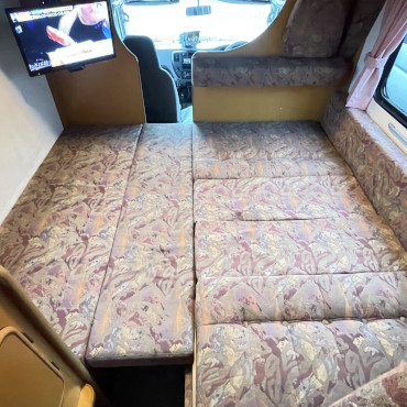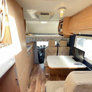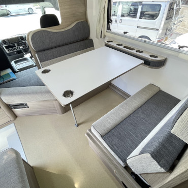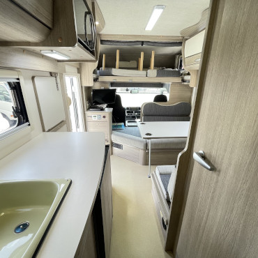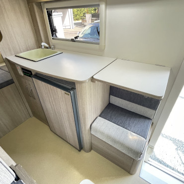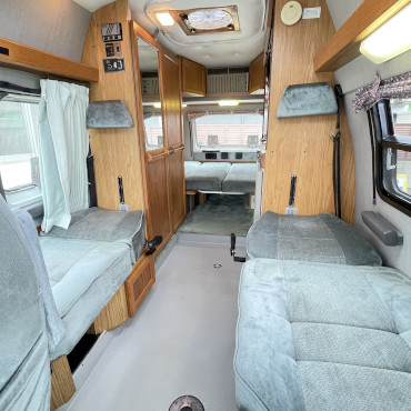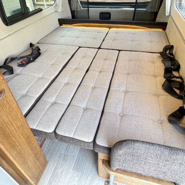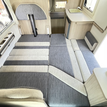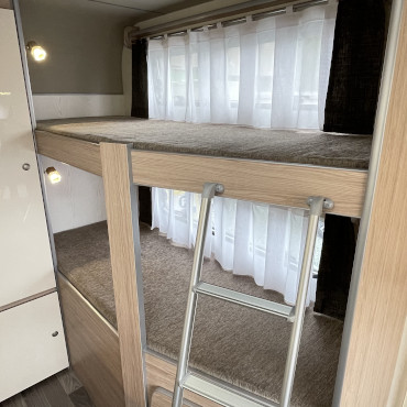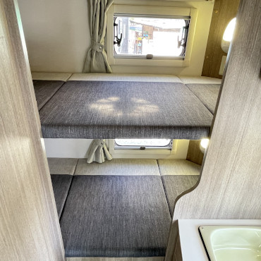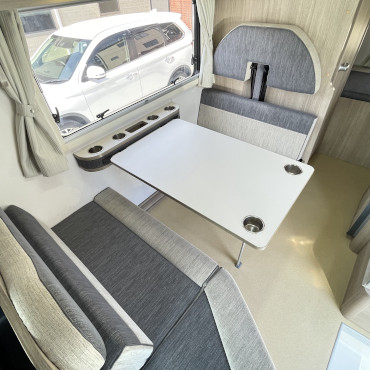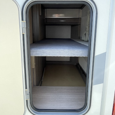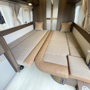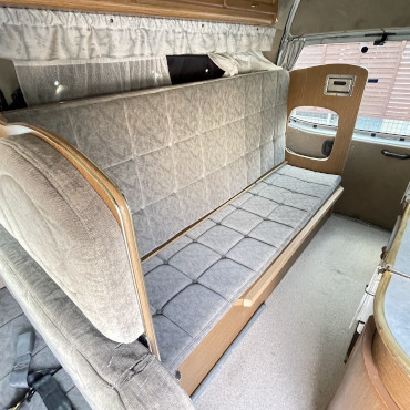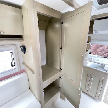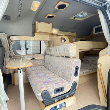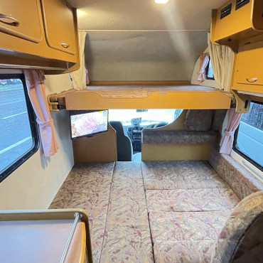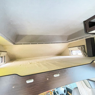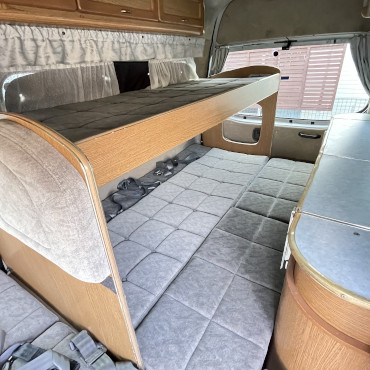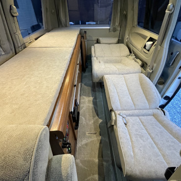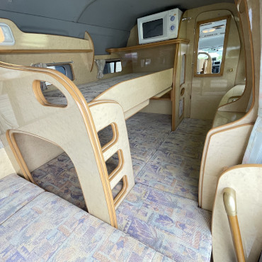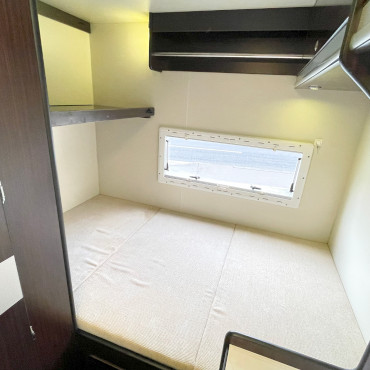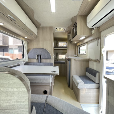 乗車定員7名、就寝定員6名、二段ベット下の収納スペースなど家族が多い方にはピッタリです。使用人数が少ない場合でも、二段ベット又はバンクベットを収納スペースとして活用する事も出来ちゃう、使い勝手の良いキャンピングカーになります。