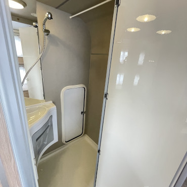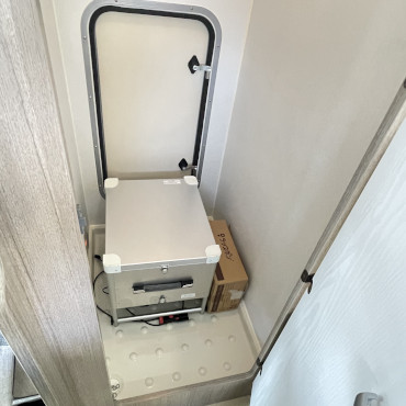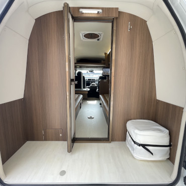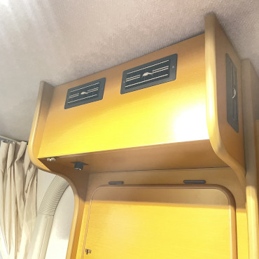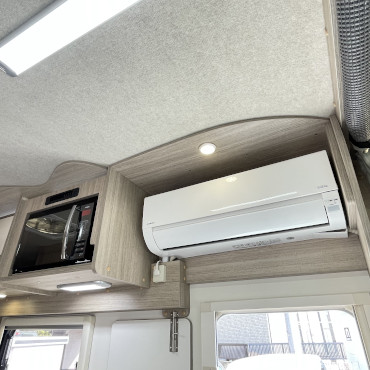 二段ベッド、ベバストFFヒーター、1500 Wインバーター、冷蔵庫、外部電源、外部充電器、走行用リアクーラー、リアヒーター、リアラダー、TVアンテナ、ルーフベンチレーター、常時バックカメラ。