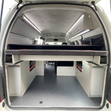 ハイエースベースで、子供から大人まで人気の二段ベットモデルです。