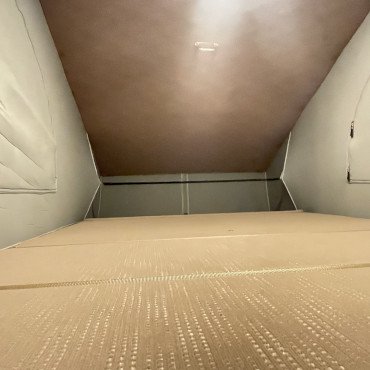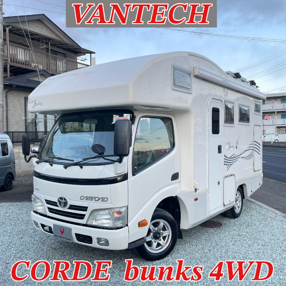 バンコンには珍しいプルダウンベッド、カセットトイレ付き専用ルーム!FFヒーター、ソーラーパネル、サイドオーニング、1500Wインバーター、上開き冷蔵庫、外部充電、マックスファンベンチレーター等、充実過ぎる内容です。