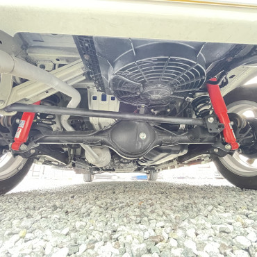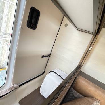 こちらはファミリーに人気の二段ベッドモデルになります。また、リアダブルタイヤベースのカムロードになり、ショックも前後ユーアイビークル製のショックに変更されていて、ディーゼルターボで高速走行もとても快適でした。