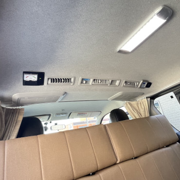 レザーシート、サブバッテリー2個、冷蔵庫、シンク、400Wインバーター、コンバーター、電圧計、リアクーラー、リアヒーター、デジタルインナーミラー、パノラミックビューモニター、LEDヘッドライト