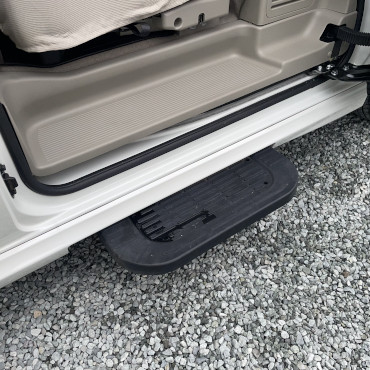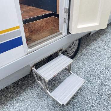 二段ベッド、ポータブルエアコ ラクールV、カセットトイレ、シャワー、電気温水ボイラー、テレビ、インバーター、3way冷蔵庫、ガラスカバー付き3口コンロ、給水タンク、13インチアルミホイール、マッドガード、フィアマステップ台、スタビライザー、ワイヤレスバックカメラ