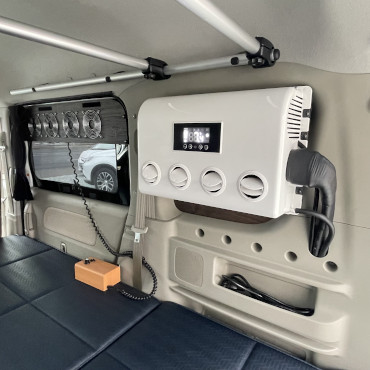 家庭用エアコン、トリプルサブ、ベバストFFヒーター、電子レンジ、1500Wインバーター、CTEK充電器、マックスファン、冷蔵庫、ドックライト、リアラダー