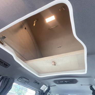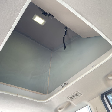ベバストFFヒーター、サブバッテリーシステム、運転席後方スライド窓付きに変更、オーリンズショック、コンフォートリーフ、ESSEX EX16インチアルミ、トヨタセーフティーセンス、ストラーダフローティングナビ、アルパインフリップダウンモニターなどその他細かいオプションも多数付いております。