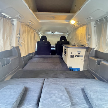ファミリーでも使用出来る、7人乗りで乗車席を利用して5名就寝可能な魅力的な車両です。